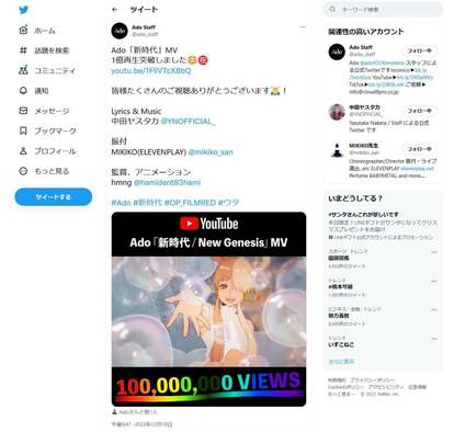 初出場の歌手・Aimerがテレビアニメ『鬼滅の刃』遊郭編のOPテーマ「残響散歌」、アニメ映画『ONE PIECE FILM RED』の登場キャラ・ウタが映画主題歌「新時代」を歌った。途中、ルフィや炭治郎など作品キャラが登場する粋な演出があった。