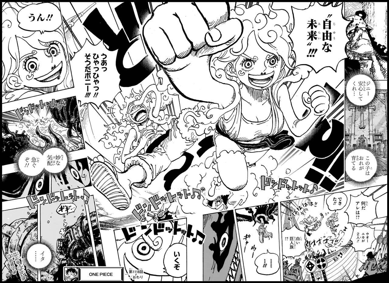 ワンピース1118話の最後のページで、まさかのボニーもニカになるという予想外な展開になりました。